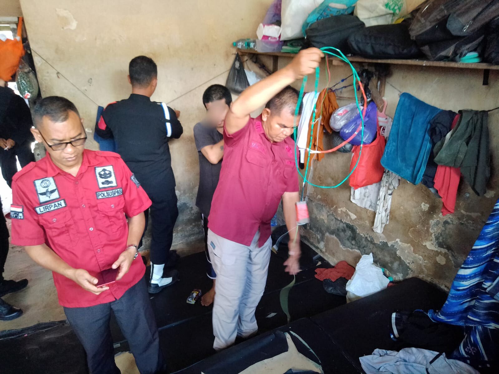 “Razia rutin ini kami lakukan untuk mencegah terjadinya gangguan keamanan didalam lapas seperti tersetrum kabel, perkelahian yang menggunakan sajam rakitan/sendok dan penyalahgunaan narkoba dan handphone”. ucap Mokhamat Lirpan.